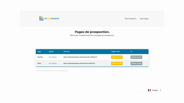 Het gebruik van de prospectiepagina's is volledig gratis. U hebt toegang tot de catalogus van pagina's, u kunt ze verspreiden en uw prospecten kunnen onbeperkt hun contactgegevens achterlaten.
